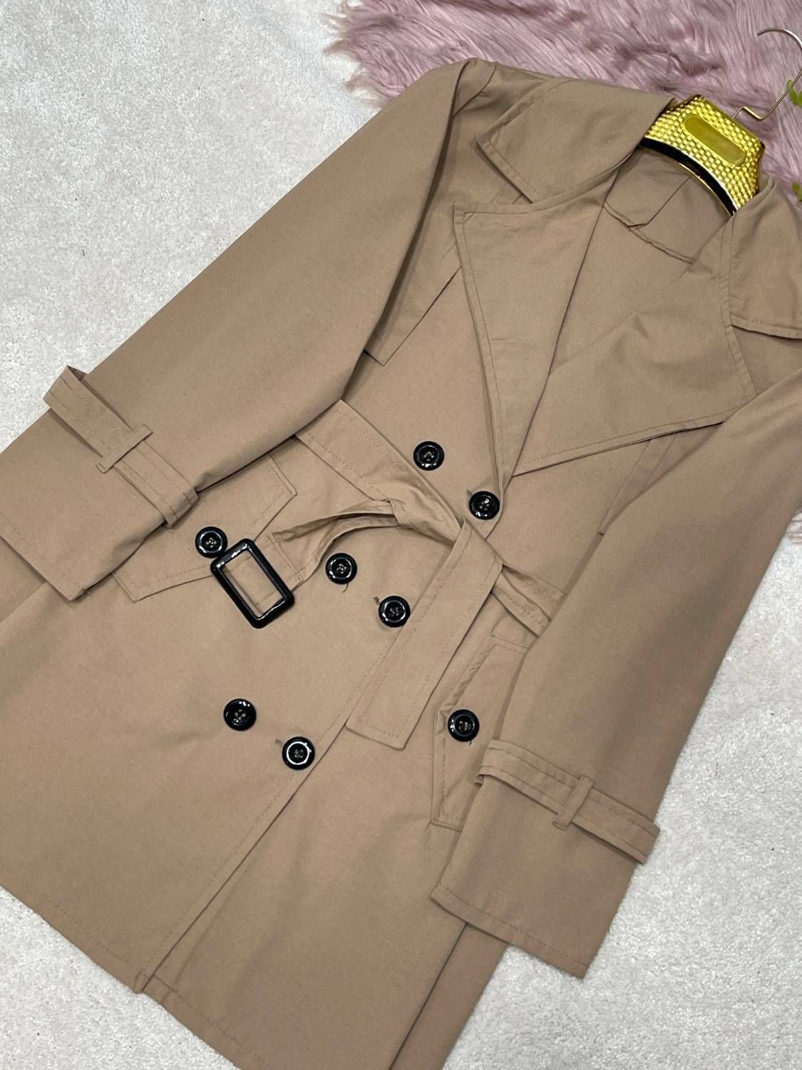 🛍 توضیحات: کت دارای سه دکمه ی کاربردی میباشد دوجیب کاربردی و کمربند جهت تنظیم سایز مچ استین ها دارای بند کاربردی میباشد جهت تنظیم اندازه مچ و ایست و تنخور بهتر